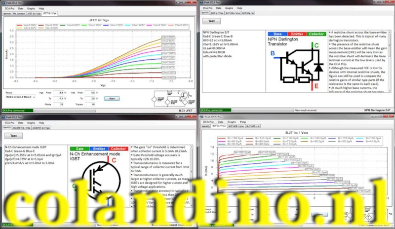 De DCA75 van Peak Electronics is een analyse apparaat voor halfgeleiders. De meter herkent en analyseert onder andere bipolaire en darlington transistoren, meerdere types MOSFET, FET’s, triac’s, thyristoren en verschillende types diodes waaronder meer- of enkelkleurige LED’s. Als er een transistor aangesloten wordt op de DCA75 begint deze vanzelf met analyseren en bepaalt hij het type halfgeleider dat aangesloten is. Als deze herkend is kan er met behulp van een knop meer informatie op het scherm weergegeven worden, zoals bijvoorbeeld karakteristieke voltages of de pinout van het component.