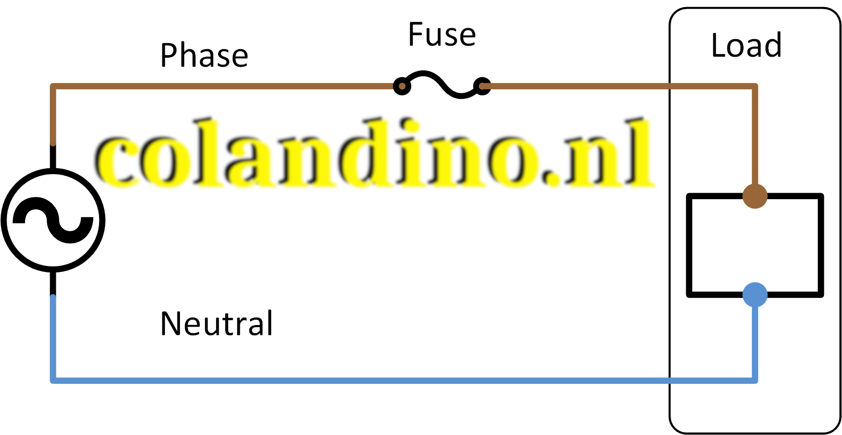 | Stroom loopt zodra een stroomkring gesloten wordt. Stelt u zich bijvoorbeeld twee losse wisselstroomdraden voor, een fase en een nul draad. Als de draden daar maar gewoon hangen, dan loopt er geen stroom omdat het stroomkring niet gesloten is. Maar zodra u met de ene hand de fase aanraakt en met de andere hand de nul draad, hebt u destroomkring gesloten en stroomt de elektriciteit van de fase, via uw lichaam en via uw hart, terug naar de nul draad. De stroom zal blijven lopen tot de zekering doorbrandt, maar tegen die tijd bent u waarschijnlijk al dood. |