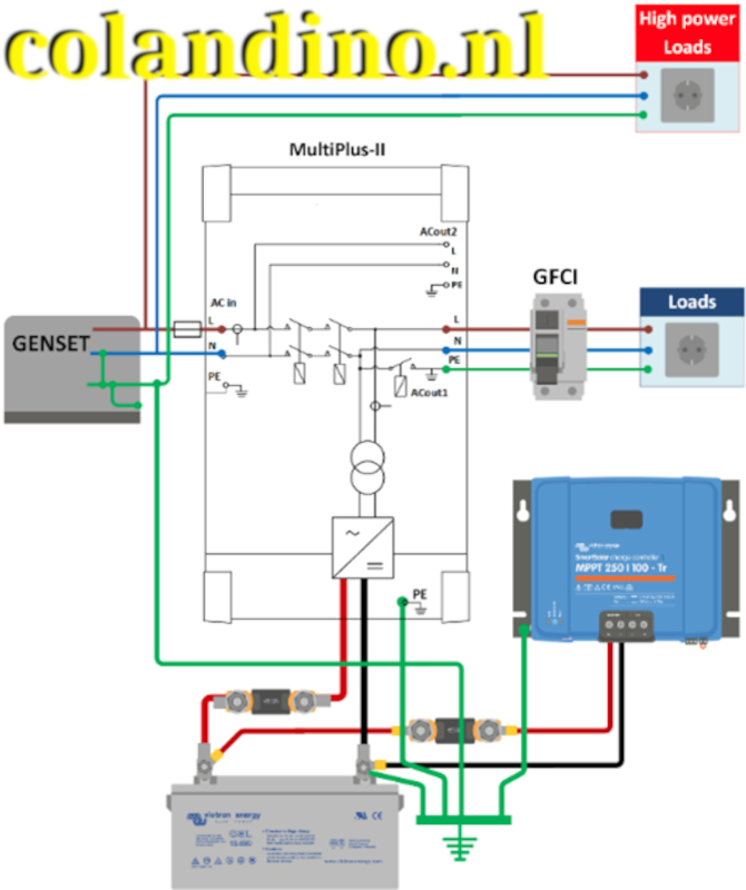 Een AC-stroombron moet een nulgeleiderverbinding (MEN-link) hebben zodat een aardlekbeveiliging kan werken. Dit is het geval voor het net maar ook als de AC-bron een aggregaat of een omvormer is.