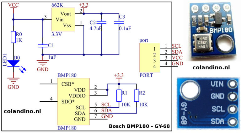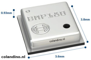 Een zeer compacte barometer die werkt via I2C. De BMP180 is de betere opvolger van de BMP085, en zo goed als identiek.