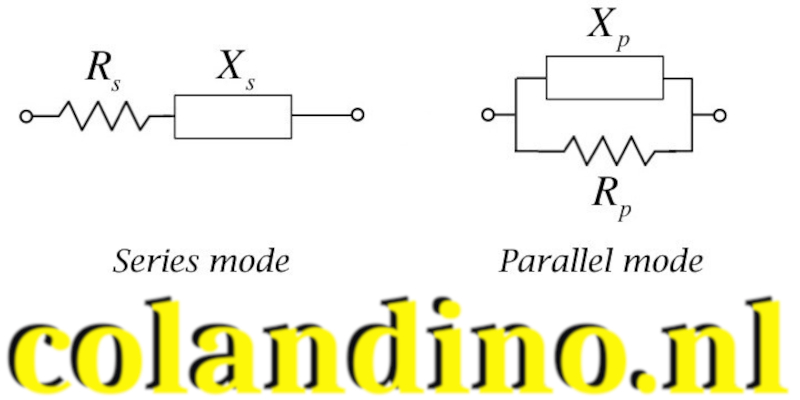 De DE-5000 meet de complexe impedantie van het component en berekent de bijbehorende L, C en R waarden. Er wordt aangenomen dat het component gemodelleerd is als een reactieve component (Xs) in serie met een weerstand (Rs) of een reactieve component (Xp) parallel met een weerstand (Rp). Het seriemodel is het beste voor het meten van lage impedanties (kleine weerstanden, kleine spoelen en grote condensatoren), terwijl het parallelle model geschikt is voor hoge impedanties (grote weerstanden, grote spoelen en kleine condensatoren). In alle modi met de naam Auto kan de DE-5000 automatisch het juiste model kiezen.
