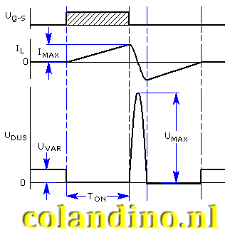 De spoelspanning zal nu tot een hoge waarde opslingeren. Zolang de breakdown spanning nog niet bereikt is zal de energie in de spoel worden overgedragen aan de parasitaire capaciteiten Cpar in de schakeling. De maximum spanning die hierbij ontstaat is gelijk aan: