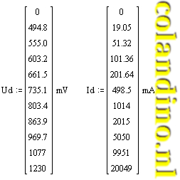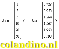 Met de waarden van Uvar en URs kan de bijbehorende diodespanningen berekend worden: