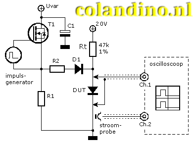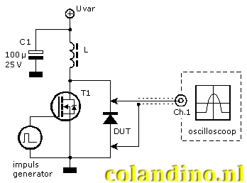 De te testen diode is gemerkt met “DUT”, Diode Under Test.