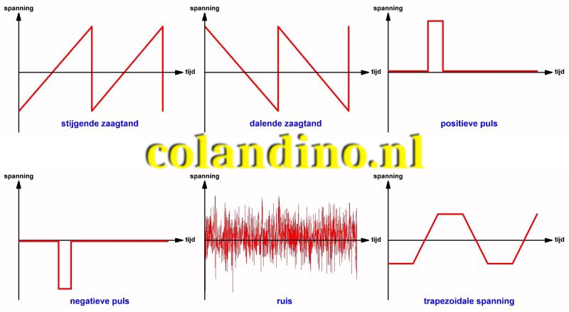 De oude analoog werkende generatoren (lees verder) konden meestal maar de drie genoemde basissignalen genereren. Moderne digitale functiegeneratoren bieden echter een vrijwel onbeperkt aantal golfvormen aan. De extra golfvormen die u het vaakst zult aantreffen zijn: