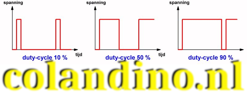 Dat is een handige functie die op vrijwel alle functiegeneratoren aanwezig is. Met deze functie kunt u de tijd-symmetrie van het uitgangssignaal instellen. Dat is niet interessant als u de signaalvorm op sinus instelt, aan een niet tijd-symmetrische sinus heeft niemand wat. Het is echter wél interessant als u uw functiegenerator instelt op ‘Square’ (rechthoek). Met de potentiometer ‘DUTY’ of ‘SYMM’ kunt u dan de tijd-symmetrie van de blokvormige spanning over een breed bereik regelen. De tijd-symmetrie wordt altijd uitgedrukt in procenten. Een blokgolf met een duty-cycle van 5 % heeft gedurende 5/100 van een periode een hoge spanning en gedurende 95/100 van de periode een lage spanning.
