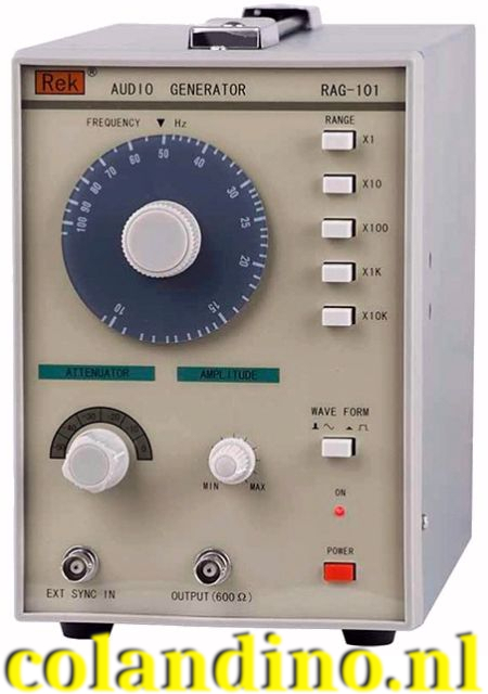 U herkent zo’n analoog apparaat aan het feit dat de frontplaat een heleboel draaipotentiometers en een aantal draai- of drukschakelaars bevat. Dat is meteen ook het grote voordeel van dergelijke apparaten. U kunt ze heel gemakkelijk bedienen. Door aan twee knopjes te draaien schakelt u in twee seconden om van een uitgangssignaal van 20 Hz naar een uitgangssignaal van 25 kHz. Dat doet u écht niet zo gemakkelijk en snel met moderne digitale apparaten!