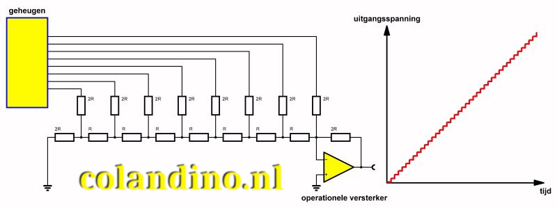 Er zijn diverse systemen ontwikkeld waarmee u opeenvolgende digitale samples kunt omzetten in een analoge spanning. De kwaliteit van deze schakeling bepaalt in hoge mate de zuiverheid van de uitgangsspanning van de functiegenerator.