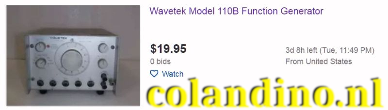 Wij hebben al geschreven dat u, met wat geluk, prachtige oude analoge functiegeneratoren kunt kopen voor een paar tientjes. Zoeken op eBay naar ‘function generator’ levert tientallen hits op, zoals de onderstaande Wavetek 110B voor nog geen twintig dollar. Let er echter op dat de meeste eBay aanbiedingen vanuit de Verenigde Staten komen en dat u vaak heel hoge verzend- en inklaringskosten moet betalen. Ook op Marktplaats en op Marketplace treft u soms mooie aanbiedingen aan, met als voordeel dat deze lokaal zijn. Uitstekende merken waren Philips, HP (Hewlett Packard), Wavetek, Dynascan en GW Instek.