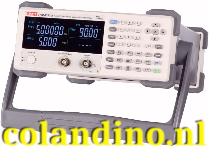 Ook in die prijsklasse is een aantal alweer Chinese digitale functiegeneratoren te koop. Maar naar onze mening is de béste functiegenerator voor het hobby-lab in die prijsklasse de UTG9005C-II van Uni-Trend Technology (UNI-T). Met zijn prijs van € 120,00 produceert deze generator zijn uitgangssignalen tot 5 MHz met een resolutie van 14 bit en een sampling-rate van 125 MSa/s.