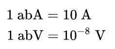 De eenheid is zo gekozen dat een verandering in de stroomsterkte van 1 abampère per seconde een spanningsverandering induceert van 1 abvolt. Voor de cgs-eenheden abampère abA en abvolt abV geldt: