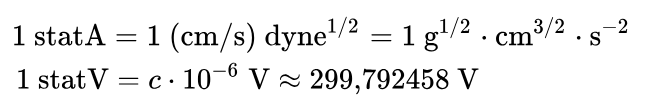 Daarin is c ≈ 299,792 458 de numerieke waarde van de lichtsnelheid in m/s. De eenheid is zo gekozen dat een verandering in de stroomsterkte van 1 statampère per seconde een spanningsverandering veroorzaakt van 1 statvolt. Voor de cgs-eenheden statampère statA en statvolt statV geldt: