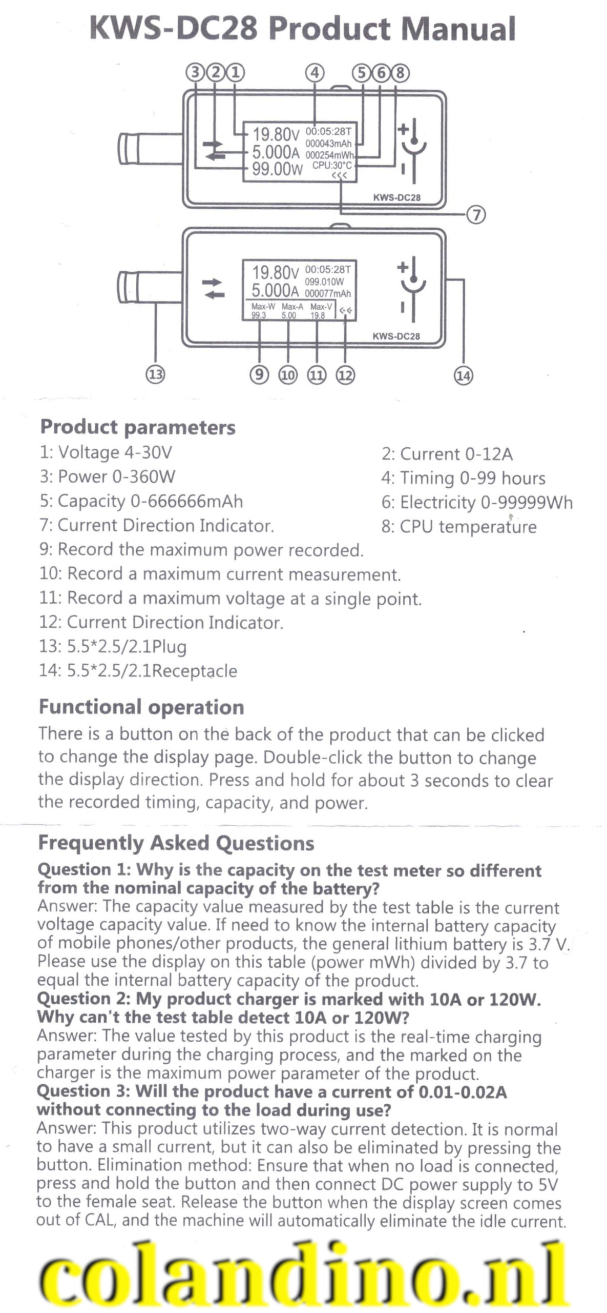 - Modelnummer: DC Voltage Ammeter Power Meter