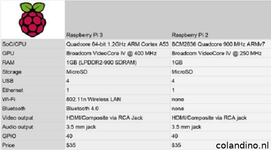 Goed nieuws voor Raspberry-fans: de nieuwste incarnatie heeft een stel interessante mogelijkheden gekregen. 3 Model B heeft een 64-bit-quadcore-processor en ongeveer de helft meer rekenkracht dan zijn voorganger. Vooral interessant zijn de toegevoegde Wifi en Bluetooth-verbindingen.