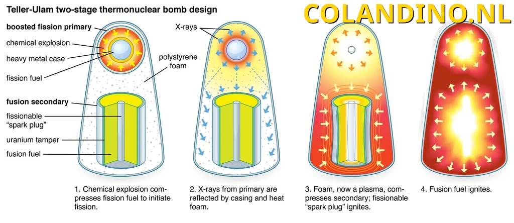 Een apparaat waarin splijtings- en fusiereacties (thermonucleaire reacties) worden gecombineerd, kan daarom een explosie met een enorme kracht produceren. Dergelijke wapens zouden doorgaans ongeveer gelijke hoeveelheden explosieve energie vrijgeven door kernsplijting en door kernfusie.