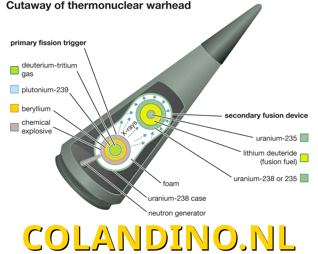 (2) als het lithium in het wapen wordt geplaatst in de vorm van de verbinding lithiumdeuteride (LiD), is de kans groot dat het tritium dat bij de reactie ontstaat, reageert met het deuterium.