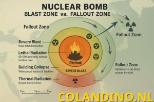 Radioactieve neerslag is simpelweg het stof en vuil dat na een kernexplosie op de grond valt. Het is “geladen” met straling en zal uiteindelijk “uitbranden” – een proces dat enkele dagen duurt.
