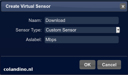 Je hebt deze dummy hardware nu aangemaakt, klik nu in de regel “speedtest” op maak virtuele sensoren.