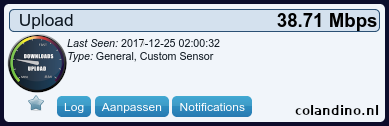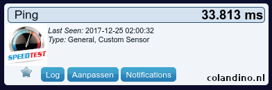 Vul bij On action “script:///home/pi/domoticz/scripts/speedtest.sh” in en klik op “Opslaan”. Als je nu op de Breedband knop klikt zal het script worden uitgevoerd en worden de Ping, Download- en Uploadsnelheid na circa 30 seconden ververst en zichtbaar in de tab “Overige”.
