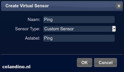 Maak de drie benodigde virtuele sensoren aan volgens onderstaande voorbeelden: