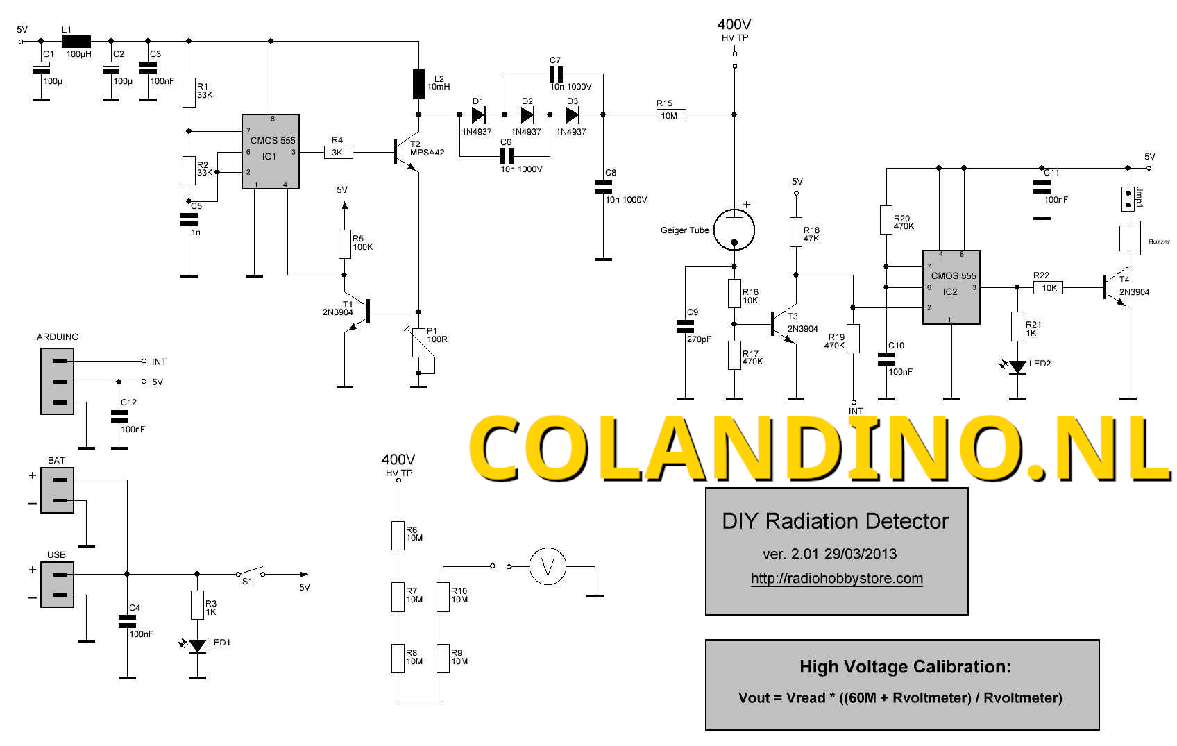 Schema DIY Geiger Counter Radiation Detector Kit ver.2