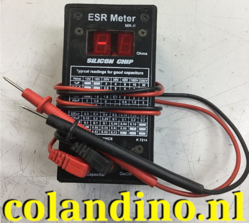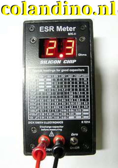 Identificeert defecte elektrolytische condensatoren direct, zonder dat deze van de printplaat verwijderd hoeven te worden. Condensatoren kunnen vaak zeer hoge ESR-niveaus vertonen, terwijl de juiste capaciteit op een multimeter wordt weergegeven. In apparaten zoals schakelende voedingen kan een hoge ESR in condensatoren problemen veroorzaken zoals verlies van regeling, overmatige hoogfrequente ruis, enz.