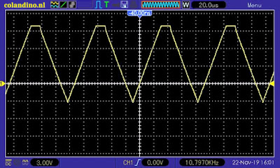 De mooiste 350 kHz driehoek die wij uit deze generator konden toveren.