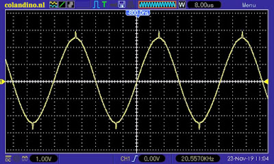 Bij 20 kHz zit er nog steeds heel veel vervorming op de sinus.