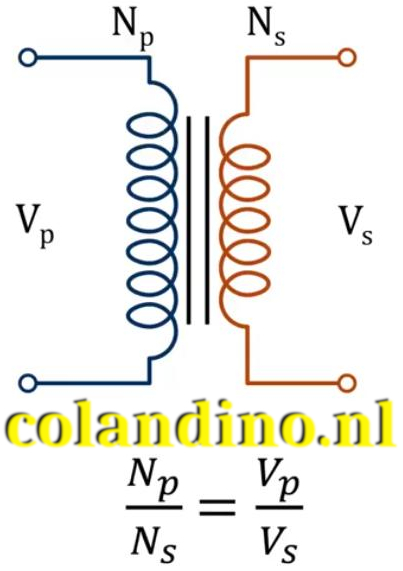 - Bijvoorbeeld: een transformator met 10 keer meer windingen op de primaire dan op de secundaire heeft een wikkelverhouding van 10 en dit zou 120 volt op (primair) terugbrengen tot 12 volt op (secundair).