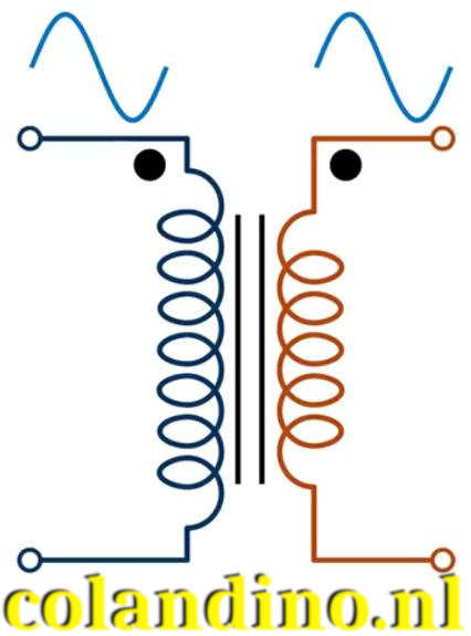 In sommige gevallen hebben transformatoren markeringen in de vorm van stippen enz. om aan te geven welke draden dezelfde polariteit hebben.