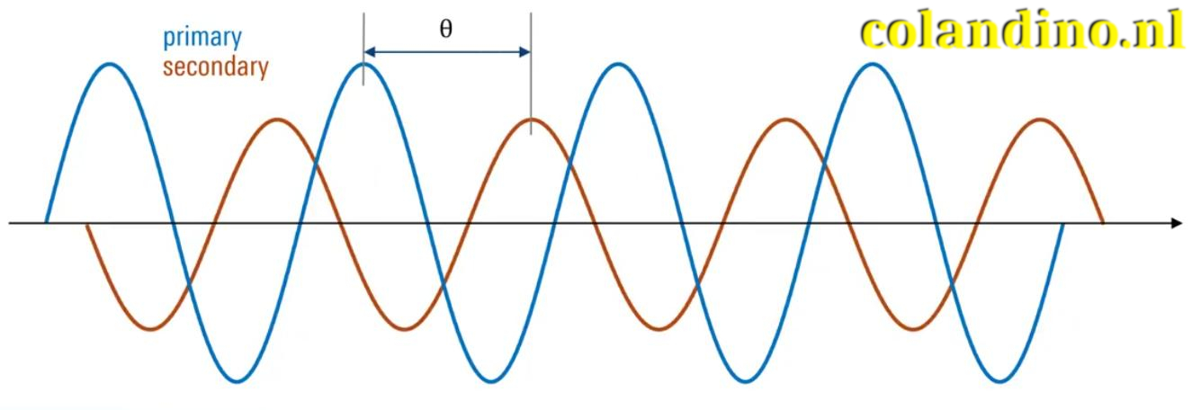 - In een ideaal geval zou er een nulfaseverschuiving zijn tussen signalen met dezelfde polariteit.