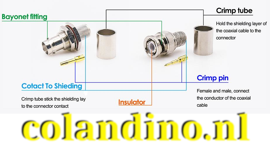We gebruiken gekrompen BNC-connectoren om de installatie te tonen: