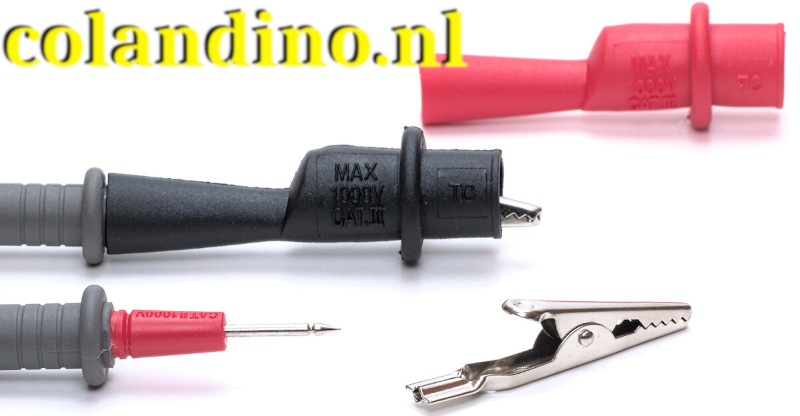De meegeleverde meetkabels zijn van een eenvoudig type, maar dienen hun doel. De 80 cm lange kabels moeten worden gecoat met PVC en zijn daarom een beetje stijf. Krokodilklemmen, die ook in het leveringsbereik zijn opgenomen, kunnen met een diameter van 2 mm aan de meetpunten worden bevestigd. Het inpluggen vereist echter enige vaardigheid, omdat de kleine openingen door de isolatie worden bedekt.